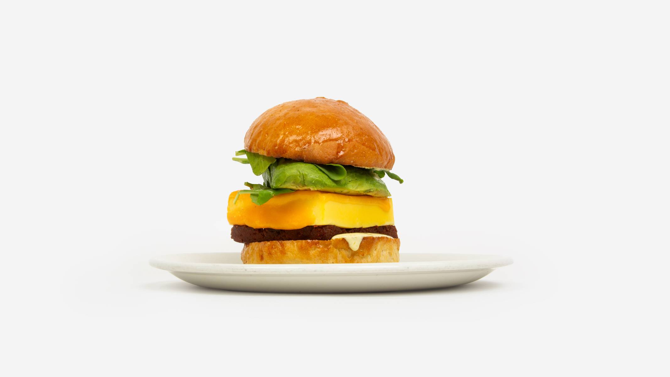 Fluffy Milk Bun, Organic Sheeted Egg, New School Cheddar, House made Crispy Hash brown Square, Fermented Jalapeño Aioli