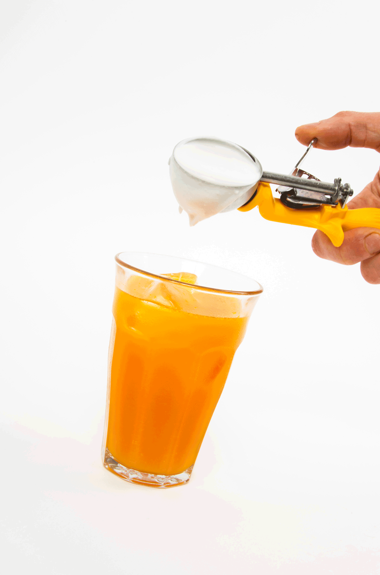 Turmeric, Ginger, Lemon, Fresh squeezed Orange Juice, a Coconut Whip, dried orange dust