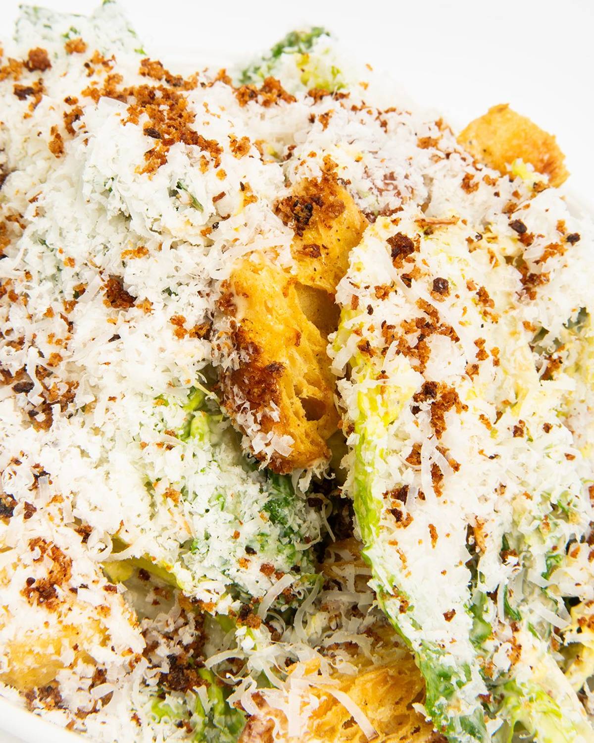 Little Gem and Frisée Caesar salad with Parmigiano Reggiano and Croissant Croutons